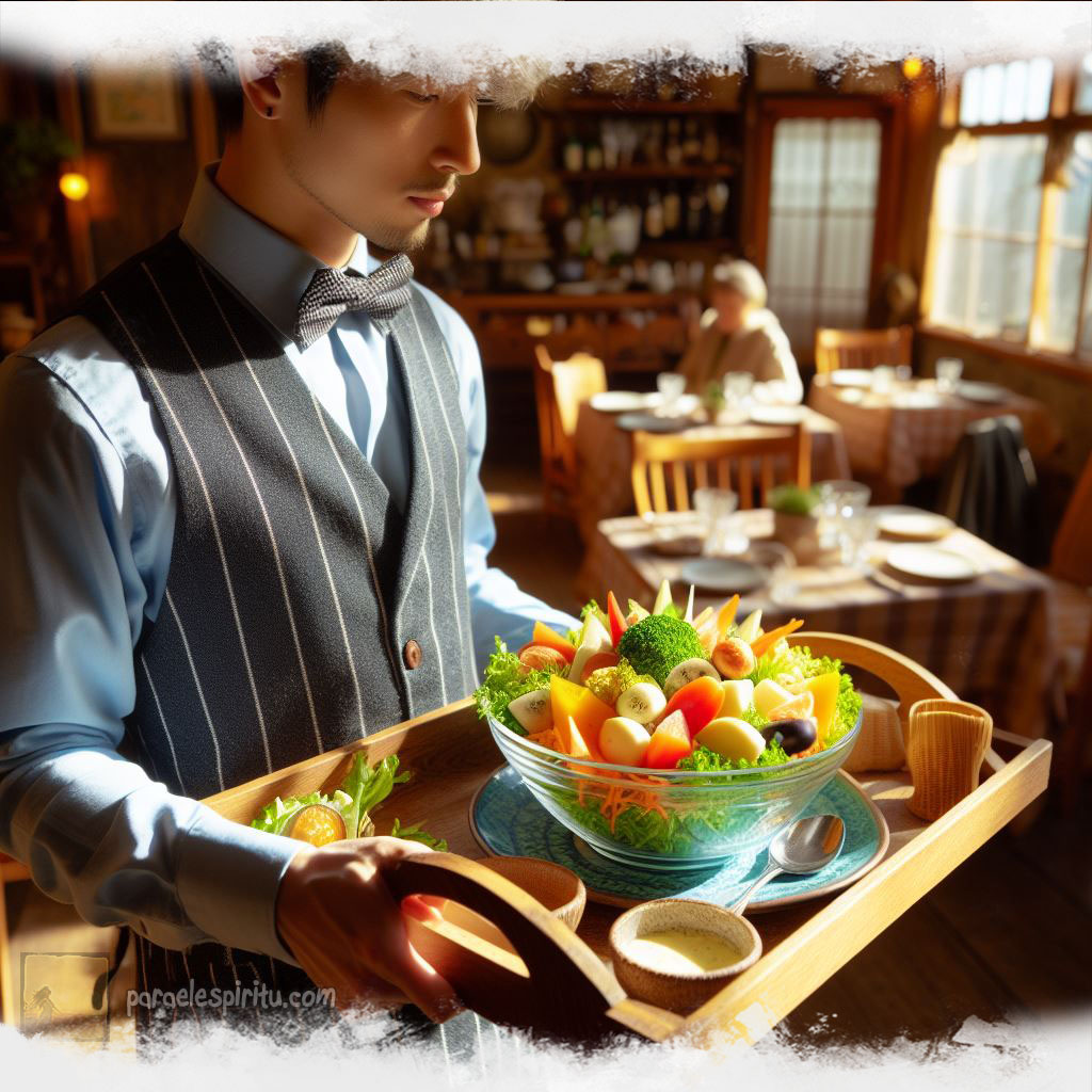 Juan salió de su casa dispuesto comerse una rica ensalada que había degustado el mes pasado en el Restaurant Lo Mejor para Usted. Al llegar fue recibido por un amable mesonero. Juan no solicitó el menú, ni quiso escuchar a mesonero, puesto que ya sabía lo que iba a pedir, así que sin más, ordenó al mesonero la ensalada.
