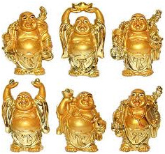 BUDA SONRIENTE: la sonrisa de Buda es el símbolo máximo de la alegría y felicidad. La tradición China dice que la bolsa que Buda tiene en su mano se supone contiene ilimitadas cantidades de oro y otras sorpresas felices.